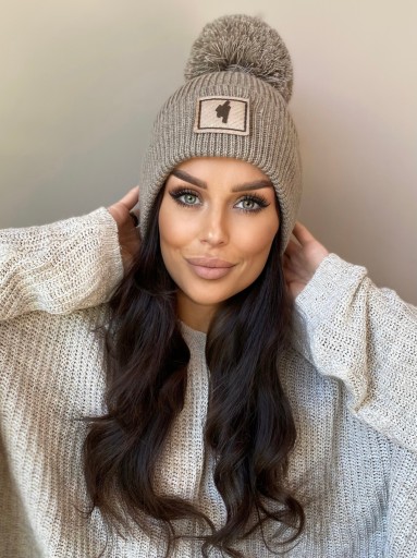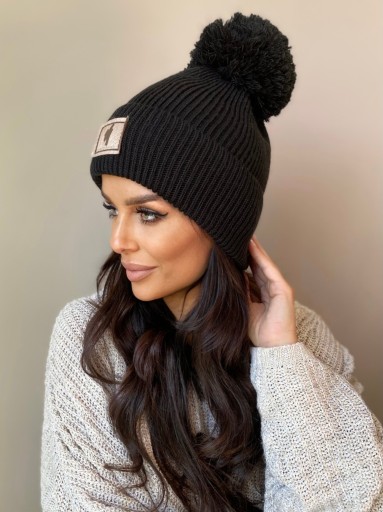 ✅ Czapka typu beanie/krasnal, delikatnie opadająca, wywijana, z duuużym pomponem.