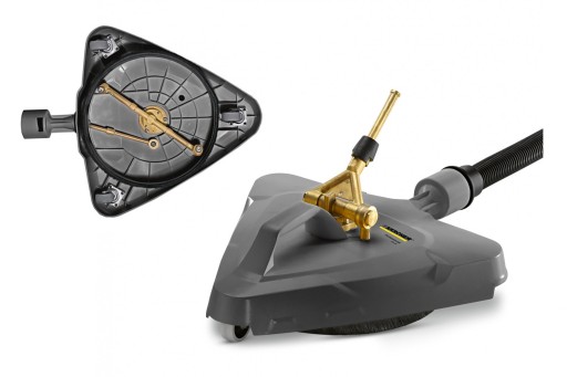 FRV 30 to głowica czyszcząca przeznaczona do szybkiego i wygodnego czyszczenia powierzchni płaskich z wbudowanym wężem do automatycznego odsysania brudnej wody. Obracające się dysze wysokociśnieniowe Power unoszą głowicę nad czyszczoną powierzchnią i pozwalają na dokładne zmycie brudu, a osłona z włosia chroni przed rozpryskami i zarysowaniem.