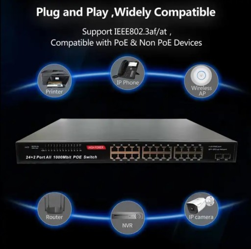 W pełni gigabitowy 24-portowy przełącznik Ethernet POE w konkurencyjnej cenie