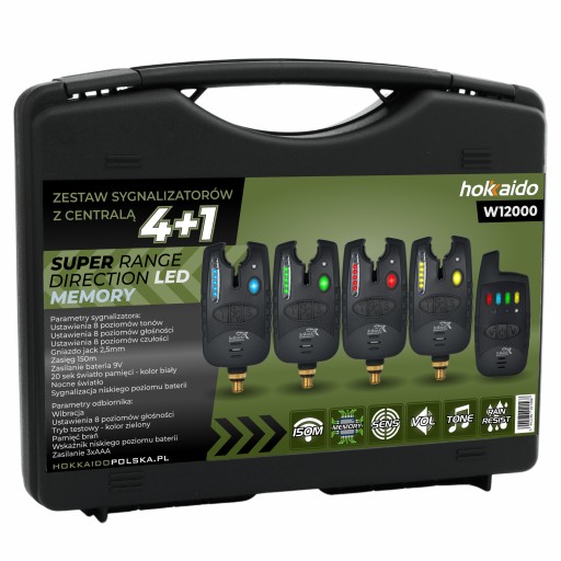 ZESTAW SYGNALIZATORÓW WĘDKARSKICH Z CENTRALKĄ 4+1 HOKKAIDO W PUDEŁKU