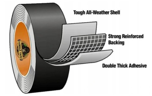 - ✅ Gorilla Tape jest wielowarstwową taśmą ze zwiększoną ilością mocnego środka klejącego z naturalnej gumy.