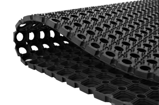 Mata wykonana jest z grubej, trudno ścieralnej gumy odpornej na wszelkie warunki atmosferyczne