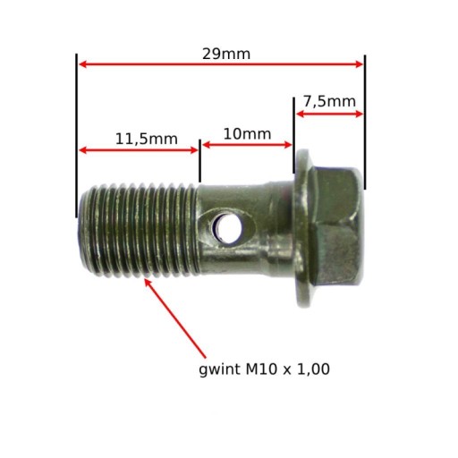 Śruba mocowania przewodu hamulcowego do pompy hamulcowej, lub zacisku. Gwint M10x1,00.