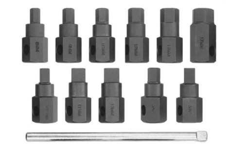 Praktyczny zestaw kluczy do większości typów korków spustowych oleju w miskach olejowych samochodów osobowych i dostawczych.