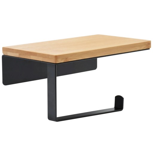 Uchwyt na papier toaletowy, został wykonany z wysokogatunkowej stali węglowej w kolorze czarnym oraz drewna bambusowego, idealnie sprawdzi się w nowoczesnej łazience.