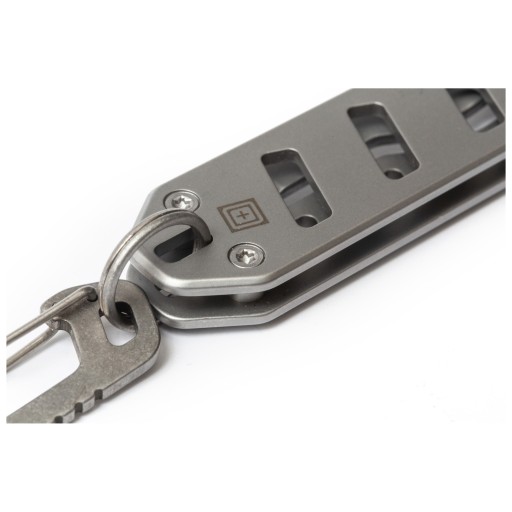 Model Base 1SF już w pierwszym momencie przykuwa uwagę swoim nowoczesnym designem. Mimo niedużych wymiarów, nóż zdecydowanie nie sprawia wrażenia „zabawkowości”, a solidnego narzędzia. Głownia o profilu sheep’s foot świetnie sprawdza się w codziennych zadaniach. Kształt ten chętnie wybierany jest także na noże ratownicze, gdyż ze względu na brak ostrego, przenikliwego wierzchołka świetnie nadaje się do wykonywania cięć bez ryzyka wbicia go np. w ciało. Wysoki, płaski szlif zapewnia dobre parametry cięcia, a poprzeczne karbowania na grzbiecie głowni dają dobre oparcie przy precyzyjniejszych pracach. Mimo niedużych rozmiarów rękojeść pozwala na całkiem pewny chwyt, który będzie nieoceniony w cięższych pracach. Stalowa konstrukcja daje wygodne oparcie dłoni, a podcięcie pod palec wskazujący chroni przed jej ześlizgnięciem na ostrze. 5.11 Base 1SF otwierany jest za pomocą wygodnego kołka, a za blokadę klingi odpowiada klasyczny framelock. Czyni to nóż całkowicie jednoręcznym w obsłudze, co jest szczególnie ważne w narzędziach EDC. Do końca rękojeści przymocowany jest karabinek micro Hardpoint, pozwalający na przypięcie noża np. do kluczy lub smyczy.