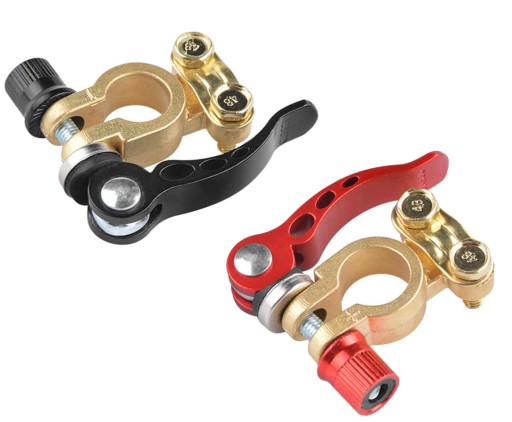 Zestaw wysokiej jakości klem do akumulatora z zaciskami, zapewniające doskonałe przewodnictwo elektryczne.
