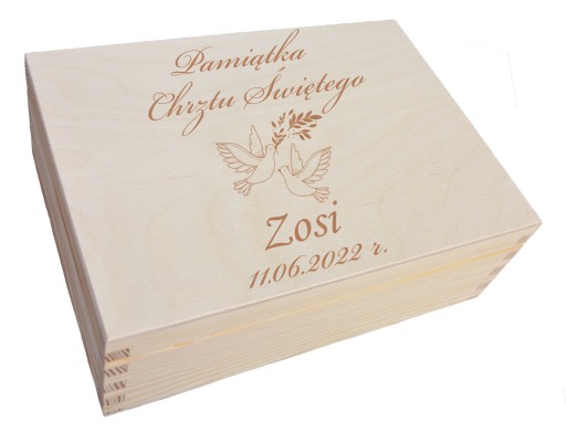 W cenie skrzyneczki jest personalizacja oprawy techniką nadruku utwardzanego światłem UV. Wykonany w ten sposób wzór jest trwały, precyzyjny i sprawia, że skrzynka staje się niezwykłą pamiątką.