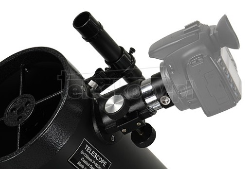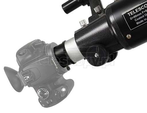 Adapter fotograficzny nose-piece (nosek) z tubusu 1,25" na T2 z gwintem filtrowym 1,25" do wykonywania zdjęć lustrzanką cyfrową zamocowaną w ognisku głównym teleskopu astronomicznego lub za soczewką Barlowa. Do podłączenia aparatu potrzebny jest jeszcze pierścień T2 (pierścień pośredniczący) odpowiedni do posiadanego korpusu aparatu z wymienną optyką (dostępne m.in adaptery bagnetowe dla Nikon, Canon EOS, Sony A, Sony E, Pentax K, Olympus E - pierścienie są dostępne w sprzedaży w naszym sklepie internetowym).