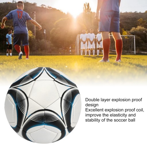 4. Materiał PVC: Piłka nożna wykonana jest z materiału PVC o dwuwarstwowej konstrukcji, zapewniającej trwałość i odporność na pękanie i ścieranie. Wytrzymuje nierówne powierzchnie i trudne warunki, zapewniając długotrwałą wydajność.