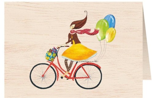 Деревянная открытка С6 + конверт Велосипед с воздушными шариками