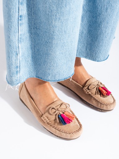 Jasnobeżowe mokasyny boho z frędzlami Shelovet R:37