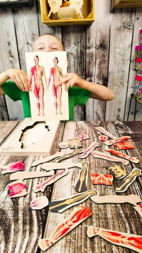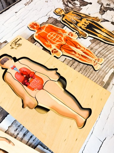 Ciało człowieka, drewniana układanka, 4 warstwy, anatomia