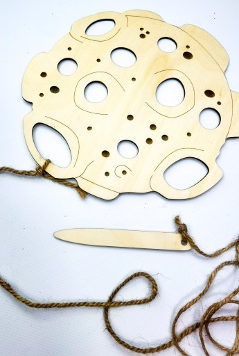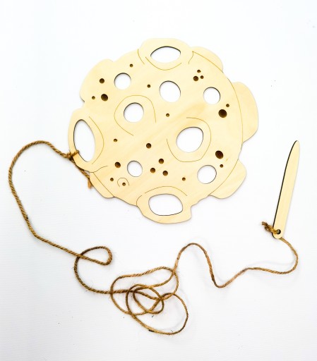 Zadaniem dziecka jest przeplatanie sznurka przez otwory.