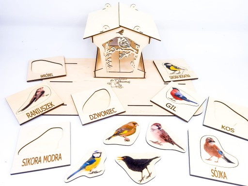 Dziecko podczas wspaniałej zabawy poznaje poszczególne ptaki i ćwiczy małą motorykę. Dołączone do zestawu karty pracy pozwolą dziecku odwzorowywać ułożenie ptaków w karmniku.