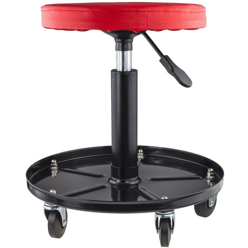 To stołek warsztatowy (taboret), wyposażony w regulację wysokości w zakresie 385 - 530 mm. Łatwe przesuwanie po warsztacie Nie musisz nawet wstawać ze stołka, by przesunąć się w wybrany punkt warsztatu. Stołek wyposażony jest w 5 obrotowych kółek (360°).
