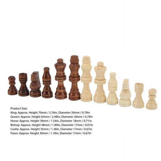 1. Materiał szachów: szachy wykonane są z imitacji drewna tworzywo sztuczne, lekkie, gładkie powierzchnie, odporne na zużycie i trwałe