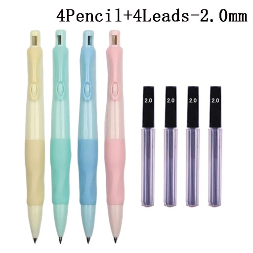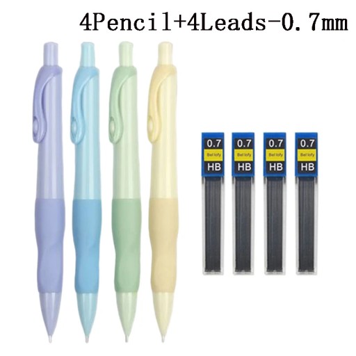4pcs/lot Comfortable Grip Mechanical Pencil Set 0.5/0.7/0.9/2.0MM Leads 2B School Art Writing Pencil Office Supplies Stationery