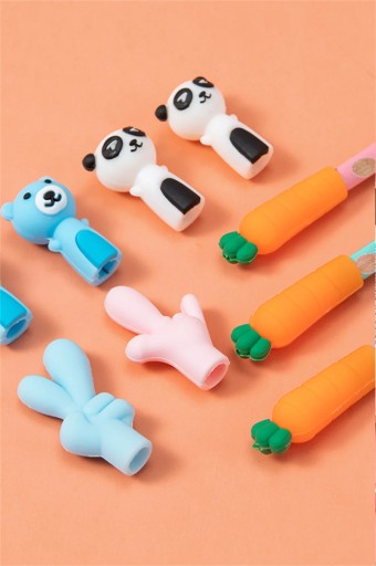 Cartoon Pencil Grips Soft Silicone Writting Tool Pen Protector Pencil Cover Extender Kawaii Stationery for School Students Kids