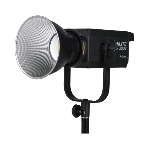 Monolight LED Nanlite FS-300B to wydajna lampa LED o zmiennej temperaturze barwowej 2700-6500K, która ułatwia dostosowanie światła do każdej sceny. W połączeniu z reflektorem zapewnia moc 38 720 luksów przy 1 m (5600K).