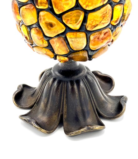 Świecznik wykonany ręcznie z naturalnego, polerowanego bursztynu bałtyckiego.