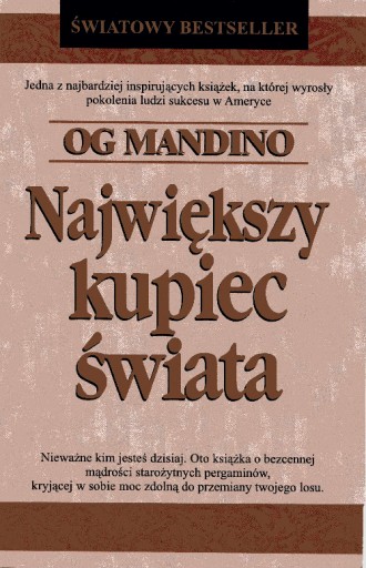 To opowieść o potędze zasad przekazywanych przez tradycyjną mądrość. Zostały one spisane na dziesięciu starożytnych pergaminach. Zapoznając się z nimi i korzystając z ich mądrości bohater osiąga bogactwo i szczęście, szacunek i lijalność otoczenia, spokój wewnętrzny i poczucie spełnienia w życiu. Zostaje największym kupcem świata. Og Mandino zaprasza Cię, Czytelniku, do wysłuchania opowiesci o Hafidzie, największym kupcu swiata, którego kupiecka kariera rozpoczęła się niefortunnie dwa tysiące lat temu w Betlejem. Zaprasza Cię także do zapoznania się z treścią owych pergaminów o tak potężnym przesłaniu. A gdy już przeczytasz, ma nadzieję, że polecisz tę książkę swoim dzieciom i swoim bliskim oraz wszystkim, którym dobrze życzysz.
