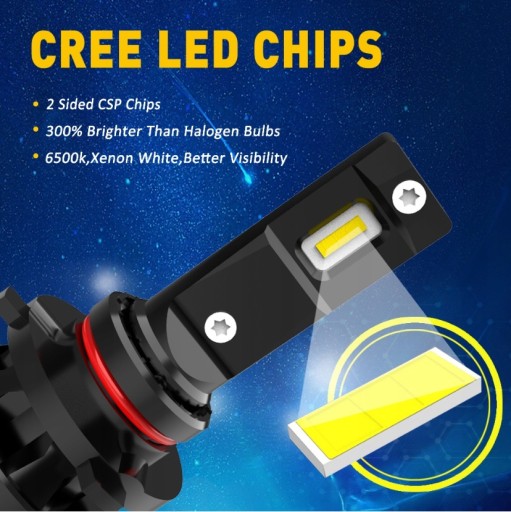 - ZESTAW 2 szt. ultra mocnych zamienników LED żarówek samochodowych mijania (krótkich) i drogowych (długich)