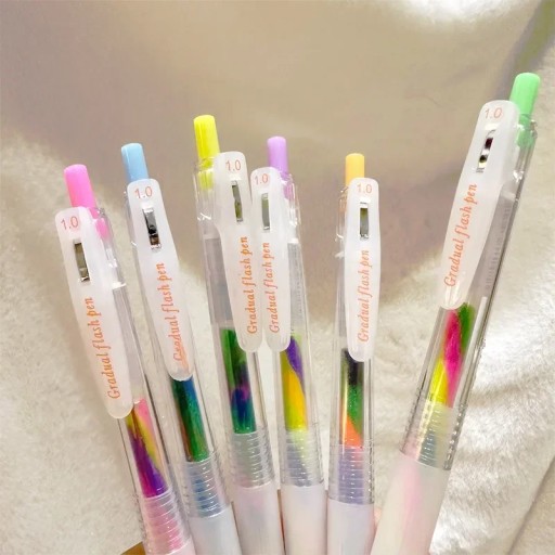 Сверкающие гелевые ручки 6 цветов, тонкие ручки с радужным градиентом для выделения