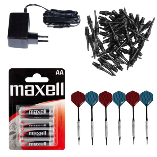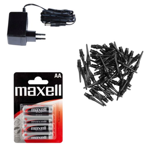 - Zestaw baterii MAXELL dzięki którym będziesz mógł od razu uruchomić tarczę, również tam, gdzie nie ma gniazdka do zasilacza