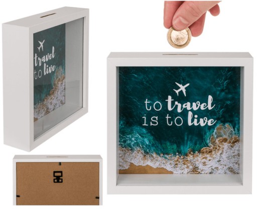 Skarbonka drewniana z okienkiem - To travel is to live
