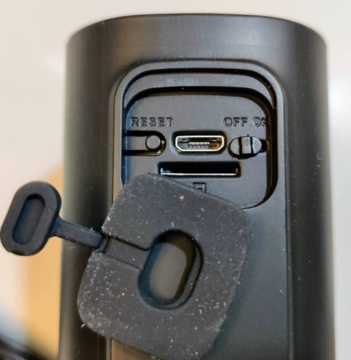 - pod zaślepką dostępny - przycisk Power - włącznik, przycisk RESET, gniazdo na karty MicroSD, złącze microUSB do ładowania wbudowanego akumulatora