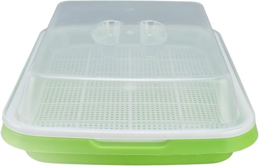 Ulepszone środowisko wzrostu nasz pojemnik do kiełkowania ma przezroczystą pokrywę która tworzy wilgotne środowisko zapewniając jednocześnie wystarczającą ilość światła dla wzrostu roślin. Jest to idealne rozwiązanie do balkonów dziedzińców kuchni i nie tylko zapewniając optymalne warunki do rozwoju roślin. Optymalne warunki ukorzeniania Pojemnik do kiełkowania ma gęste małe otwory które ułatwiają nasionom zakorzenienie się oraz wchłanianie wody i składników odżywczych. Otwory te zapewniają wystarczający drenaż i ułatwiają szybki wzrost zapewniając roślinom przewagę. Trwała konstrukcja z tworzywa sztucznego wykonana z wysokiej jakości tworzywa sztucznego nasza kiełkownica do nasion oferuje wiele zalet. Zapobiega rdzewieniu dzięki czemu jest łatwiejszy w czyszczeniu i użytkowaniu. Wysoka wydajność drenażu zapewnia szybkie i skuteczne kiełkowanie nasion. Rozwiązanie wolne od gleby Nasza taca do kiełkowania to wygodny i pozbawiony gleby wybór do codziennego użytku. Wspomaga wzrost owoców warzyw i kwiatów. Wystarczy tylko woda i możesz cieszyć się smakiem świeżych warzyw w domu. Szeroki wybór nasion Nasz zestaw do kiełkowania jest wszechstronny i może kiełkować szeroką gamę małych nasion w tym fasolę mung kiełki fasoli trawę pszeniczną trawę koci soczewicę nasiona słonecznika lucernę wanilię i inne. Dzięki temu zestawowi możesz poznać różne opcje nasion i uprawiać wybrany przez siebie różnorodny ogród.