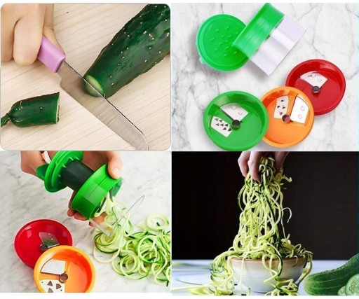 Wielofunkcyjny - ręczny spiralizator może osiągnąć cztery różne typy, używając trzech małych części. Ponadto przyssawki mogą chronić palce przed urazami.
