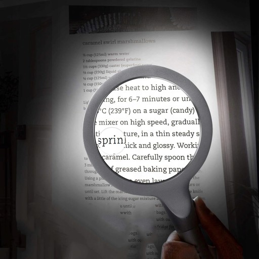 - Projekt światła LED: Dzięki 12 diodom LED szkło powiększające ułatwia czytanie lub pracę w ciemności lub w słabych warunkach oświetleniowych. Może służyć również jako latarka.