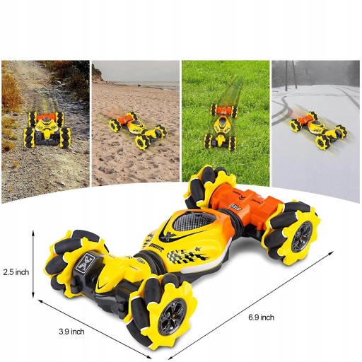 - 3 rodzaje sterowania ręcznie sterowanymi samochodami: zdalnie sterowany samochód ma trzy rodzaje zdalnego sterowania, wykrywanie zdalnego sterowania gestami, wykrywanie nadgarstka i zdalne sterowanie 2,4 Gh zapewnia czułe i precyzyjne zdalne sterowanie. 60-80m bardzo długi dystans do swobodnej jazdy. Pilot naszego samochodu RC wymaga 2 * baterii AAA (brak w zestawie).