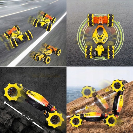 - Elastyczna jazda z napędem na cztery koła: Ręczny samochód kaskaderski z napędem na cztery koła wyposażony w mocne silniki, które poprawiają umiejętności wspinaczki i jazdy w terenie. Samochód 4WD RC jeździ we wszystkich kierunkach, nawet dryfuje na boki, wykonuje skręty o 360°, wspina się po zboczach co 45° i elastycznie zmienia kierunek w obu kierunkach poprzecznych, aby poradzić sobie z dynamicznymi zmianami na drodze, co zwiększa radość z jazdy RC samochód, przykuwa wzrok dzieci.
