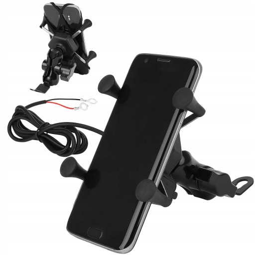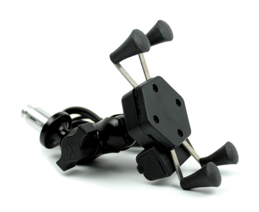 Мотоциклетный держатель для телефона с зарядным устройством на руле Trizand черный
