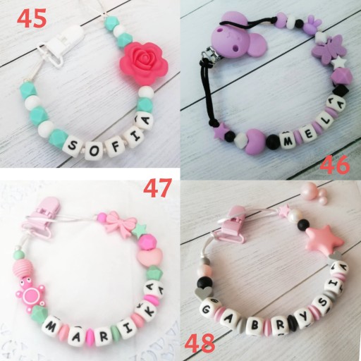 - U nas największy wybór silikonowych koralików (52 kolory i kształty do wyboru). A także, tylko my mamy silikonowe koraliki cyfry i możemy zrobić zawieszkę z datą urodzenia, zamiast imienia dziecka.