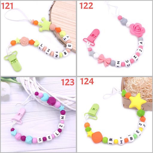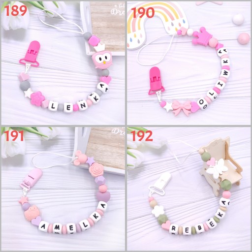 Przedmiotem sprzedaży jest bardzo ładne, funkcjonalne i modne akcesoria dla dzieci, - uchwyt do trzymania smoczka z imieniem dziecka (cały z silikonowych koralików do gryzania), który bardzo pomaga przy ząbkowaniu u dziecka. Maluch uwielbia wszystko gryźć, a najbardziej, gdy ząbkowanie. Nasz produkt uratuje dziecko od bólu, a mamie daje chwili spokoju.