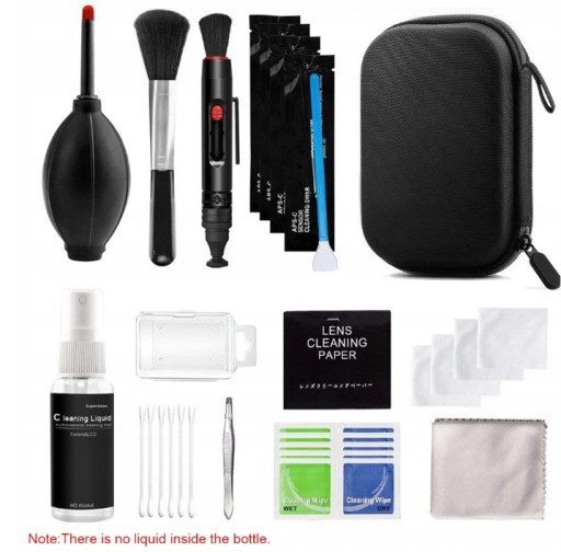 - Dmuchawa może z łatwością skierować strumień powietrza w celu usunięcia brudu i kurzu z obiektywu, a dwustronny pisak do czyszczenia obiektywu zapewnia wielofunkcyjne czyszczenie.