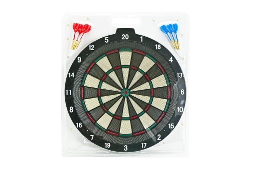- Konstrukcja: Tarcza jest wykonana z twardego, trwałego tworzywa sztucznego, które wytrzyma intensywne użytkowanie i długotrwałe użytkowanie. Posiada standardowe otwory, w które należy rzucać strzałki, a także okrągły pierścień zewnętrzny, który służy do zabezpieczenia tarczy przed uszkodzeniami.