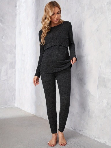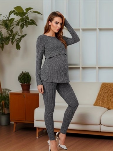 Брюки для беременных с однотонной текстурой для грудного вскармливания, комплект на осень-зиму