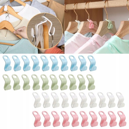Haczyki na wieszaki na ubrania Dlaczego warto wybrać nasze mini haki do zawieszania kaskadowego ? Dzięki temu kaskadowemu wieszakowi na wieszaki nie musisz już martwić się o więcej ubrań w szafie; Hak wieszaka może być użyty do zawieszenia na wieszaku, aby połączyć się z następnym wieszakiem, aby uporządkować ubrania i zapewnić dodatkową przestrzeń w szafie. Nadaje się do różnych stylów wieszaków: takich jak: wieszaki na spodnie, wieszaki z gąbki, wieszaki ze stali nierdzewnej, wieszaki drewniane, wieszaki z aksamitu itp. Ultra oszczędność miejsca: wieszaki na ubrania, które oszczędzają miejsce, mają otwór na górze i można je po prostu zawiesić na plastikowych wieszakach; Wtedy możesz uzyskać rząd pionowych wieszaków, co oznacza, że możesz uzyskać więcej miejsca niż wieszanie ubrań poziomo i pojedynczo Wykonane z wysokiej jakości tworzywa sztucznego: te wieszaki na ubrania są wykonane z wysokiej jakości tworzywa sztucznego, wytrzymałe w użyciu i niełatwe do złamania; Precyzyjne wykonanie zapewnia gładką powierzchnię i krawędzie i nie porysuje ubrania Mocne nośne: nasze haczyki oszczędzające miejsce na wieszakach są wystarczająco grube, idealne do trzymania koszul, szalików, kurtek, pasków, krawatów, płaszczy i nie tylko, nie martw się o pęknięcie, wspierając Cię przez długi czas użytkowania Górny otwór do podłączenia wieszaka ma 1 cm/0,39 cala, co jest odpowiednie dla prawie zwykłych wieszaków na ubrania, niezależnie od tego, czy wieszak drewniany, wieszak z drutu metalowego, cienki wieszak z tworzywa sztucznego i klamry do spodni Te haczyki wykonane są z tworzywa PP, ale mają dużą wagę: do 2,5 kg/5,5 funta, co oznacza, że możesz użyć jednego haczyka pod drugim, jeśli przestrzeń w Twojej szafie jest wystarczająca. Paczka zawiera: 40x haki łączące wieszaki na ubrania
