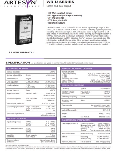 WR12D15/1000U Przetwornica DC/DC +/-15V 1A ARTESYN TECHNOLOGIES