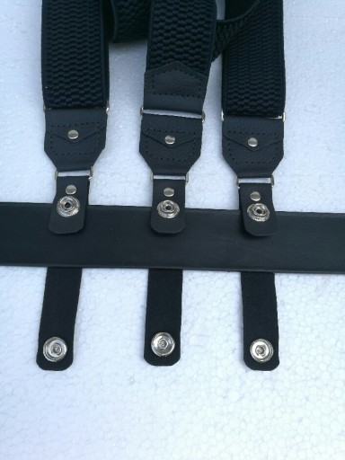 WYKONANE Z DOBREJ JAKOŚCIOWO GUMY SZELKOWEJ.POSIADAJĄ REGULACJĘ DŁUGOŚCI A SOLIDNE SZLUFKI DOBRZE UTRZYMUJĄ SPODNIE NA PASKU.WSTAWKI WYKONANE SĄ Z WYSOKO GATUNKOWEJ SKÓRY LICOWEJ KOLORU CZARNEGO DZIĘKI TEMU SZELKI BĘDĄ SŁUŻYŁY PRZEZ DŁUGI CZAS.SREBRNY KOLOR METALOWYCH,RAMEK,NAPY,REGULATORÓW.GUMA SZEROKA NA 4 CM.ROZCIĄGAJĄCA SIĘ NA 160 CM.SZLUFKI SKÓRZANE PASUJĄ NA SZEROKOŚĆ PASA DO 4 CM.