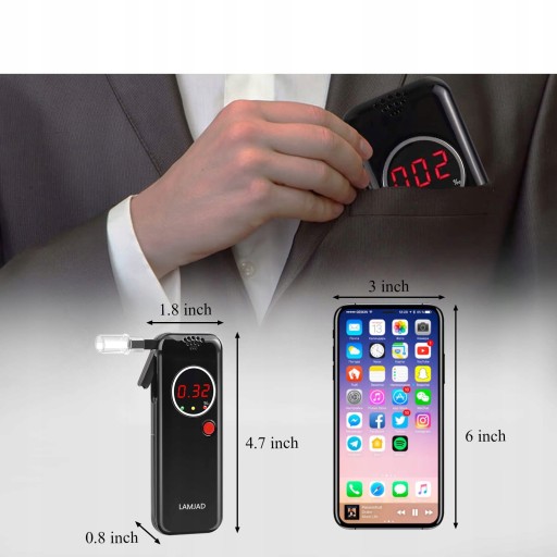 ☑️ Czuły czujnik półprzewodnikowy dokładnie wyświetla poziom alkoholu we krwi w ciągu kilku sekund.