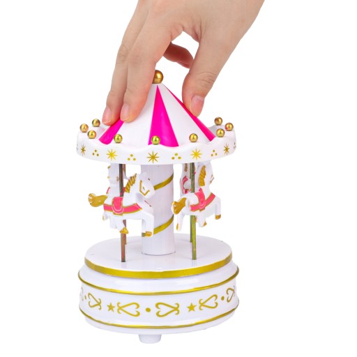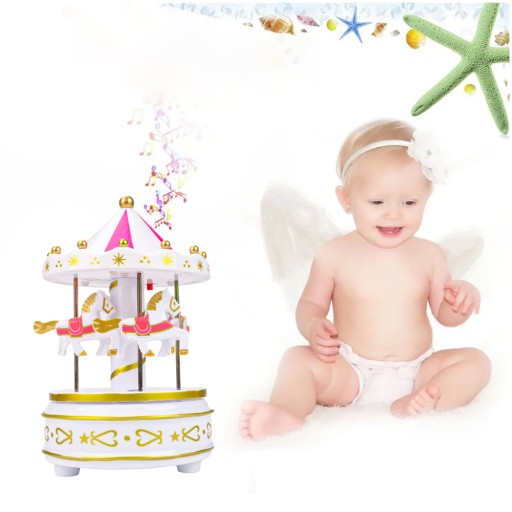🌟 Wykonane z wytrzymałego tworzywa sztucznego i wytrzymałej metalowej sprężyny, którą można łatwo przekręcić. Może odtwarzać utwory przez 3 minuty przez długi czas. W komplecie z antypoślizgowymi podkładkami, karuzelą i kolorowym pokazem świetlnym LED pod cyrkowym dachem.