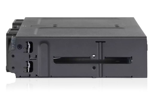 Zazwyczaj dyski SSD NVMe U.2/U.3 są instalowane wewnątrz obudowy komputera. Dostęp do nich podczas serwisowania bywa przez to utrudniony. W modelu ToughArmor MB699VP-B V3 dyski trafiają do do przedniej wnęki napędu optycznego 5,25", gdzie są łatwo dostępne, a ich konserwacja jest bardziej wydajna i prostsza. Wyjmowane tacki na dyski obsługują wszystkie standardowe SSD U.2/U.3 o wysokości od 5 do 15 mm.