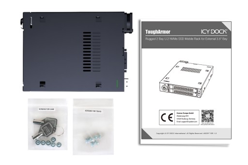 ToughArmor MB092VK-B to wytrzymała, wyjmowana obudowa U.2/U.3 NVMe PCIe 3.0/4.0, obsługująca transfer danych z szybkością do 64 Gb/s przez połączenie Slimline SAS (SFF-8654 4i). MB092VK-B mieści się w zatoce 3,5 cala. Dzięki wymiennym tackom użytkownicy mogą bez wysiłku uzyskać dostęp do dysków U.2 lub U.3 bez demontażu obudowy komputera.
