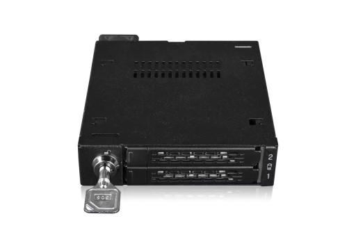 Aby uzyskać dodatkową fizyczną warstwę bezpieczeństwa, obudowa posiada zamknięcie na kluczyk. System ten chroni przed niepożądanym dostępem i zabezpiecza dyski w trudnych warunkach.